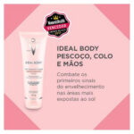 Ideal Body Pescoço, Colo e Mãos FPS 20 de Vichy foi desenvolvido especificamente para as três regiões do corpo que são mais expostas ao sol, e que primeiro evidenciam os sinais do envelhecimento, com objetivo específico de proteger, hidratar por 24h, prevenir o envelhecimento precoce e manter a luminosidade da pele.